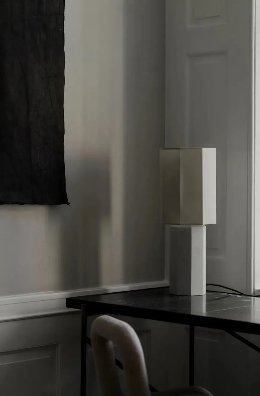 The Eight Over Eight Lamp Large, beige travertine fra Louise Roe