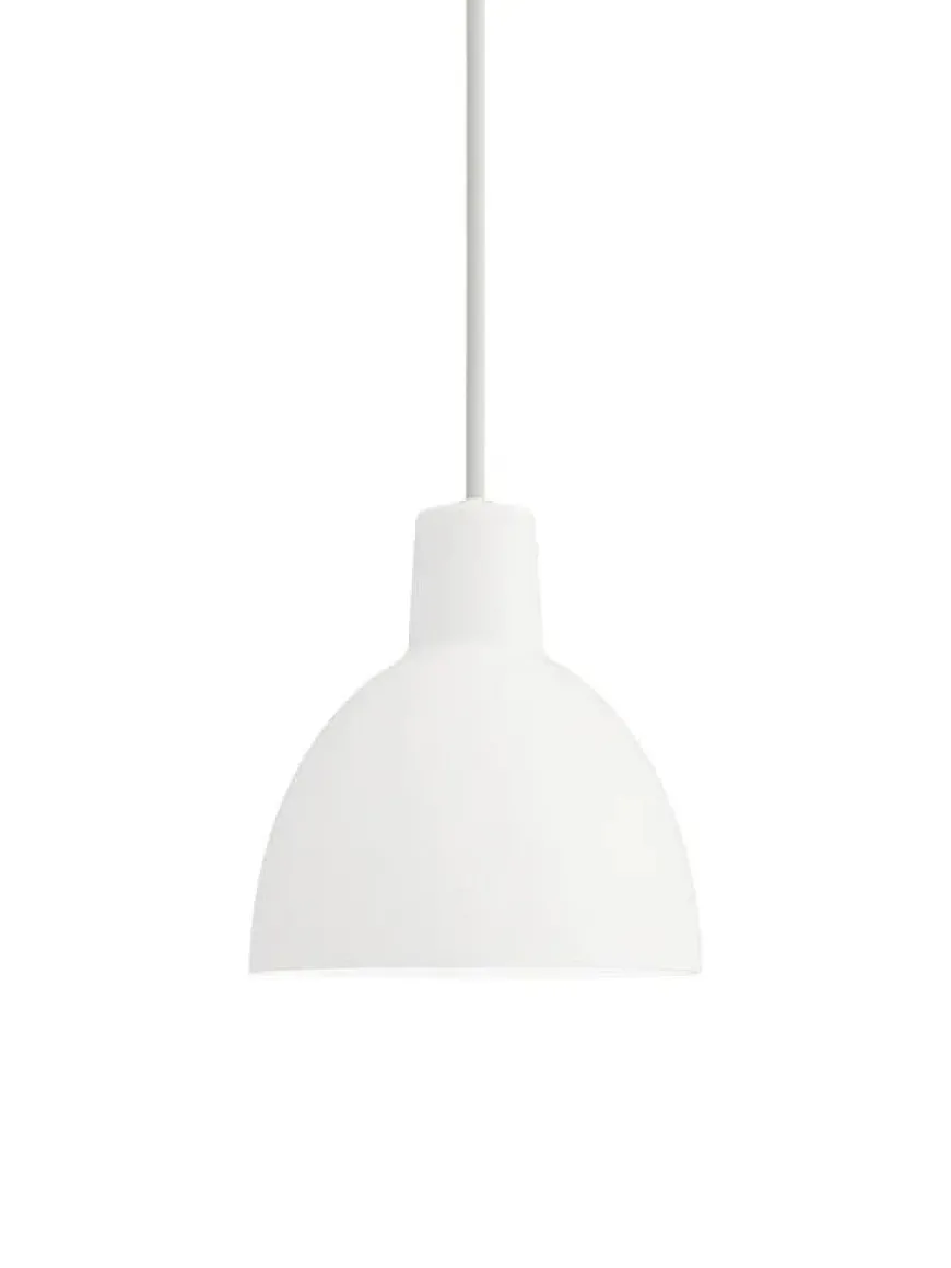 Toldbod 400 pendlen fra Louis Poulsen udsender et blødt, nedadrettet lys. Den matte, hvidlakerede inderside af den elliptiske skærm hjælper med at sikre en ensartet fordeling af lyset.