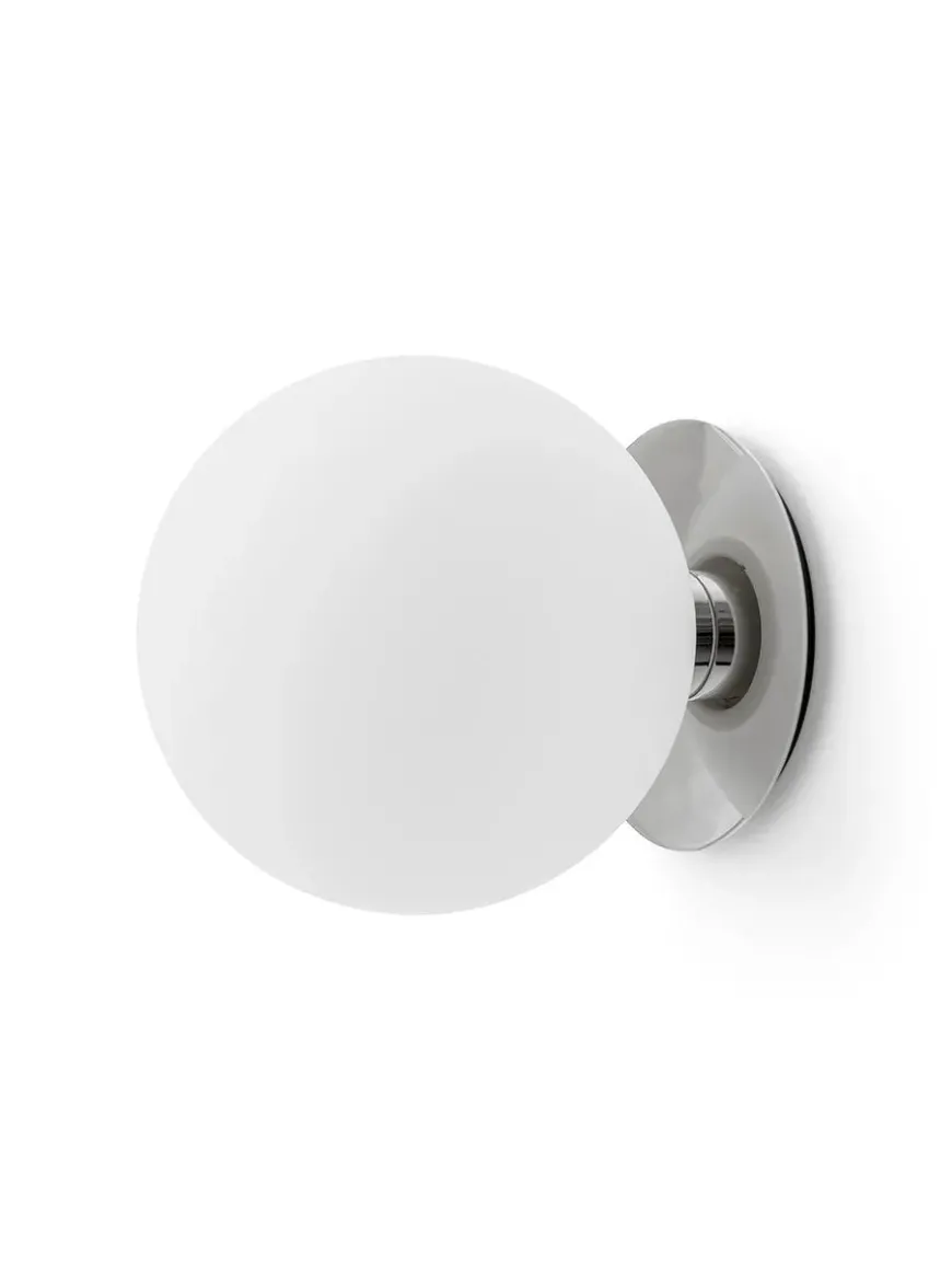 TR Bulb Wall/Ceiling Lamp fra Audo Copenhagen er en stilren og moderne lampe, designet til fleksibel montering på både vægge og lofter. Med sin minimalistiske æstetik og innovative formgivning passer den perfekt ind i moderne interiører, hvor den tilfører et elegant og sofistikeret udtryk. TR Bulb Lampen består af en rund, opalglas-skærm, der spreder et blødt og diffust lys, hvilket skaber en behagelig og stemningsfuld belysning. Basen er udført i poleret stål, hvilket tilfører et eksklusivt og industrielt præg, samtidig med at den reflekterer lyset på en subtil og elegant måde.