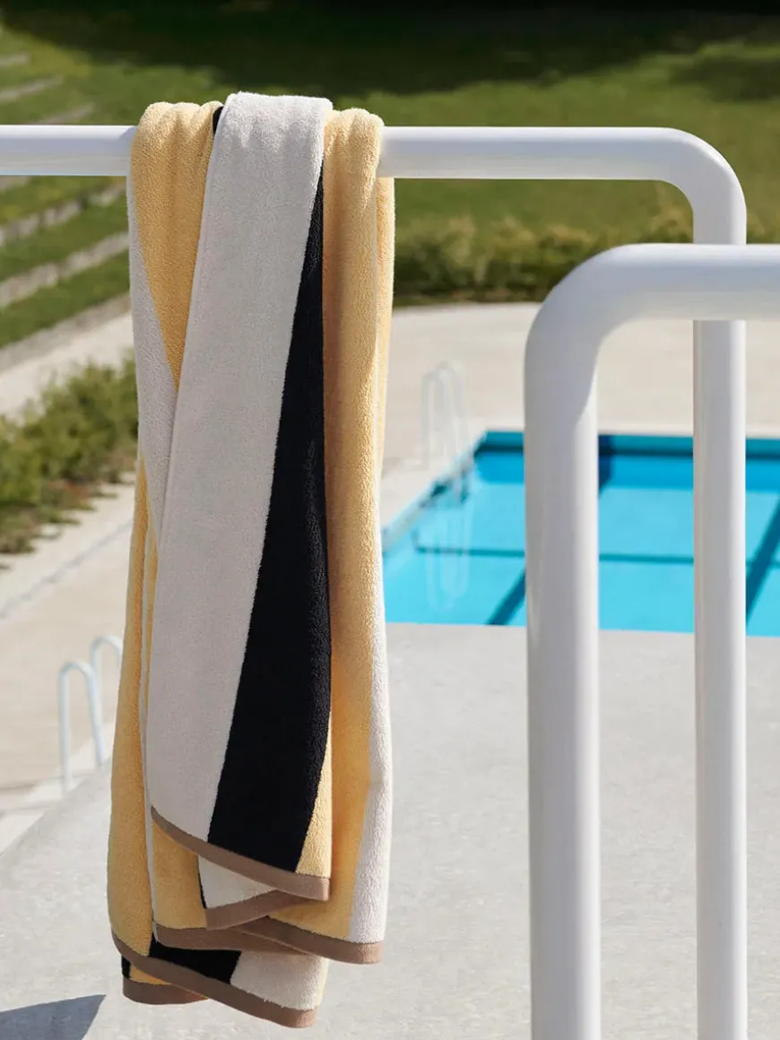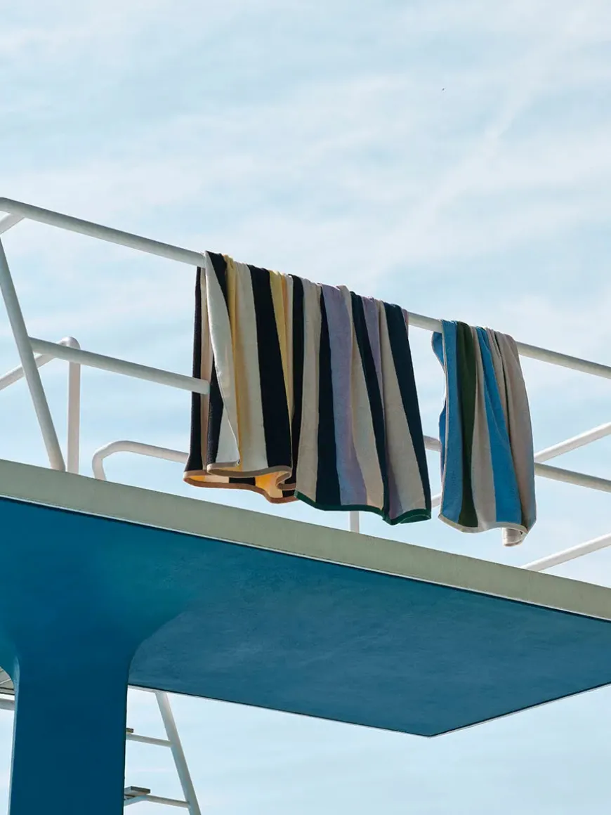 Trio-badelagenet har et trefarvet stribet design i blød OEKO-TEX®-bomuld og er et farverigt og moderne, essentielt til stranden, poolen eller badeværelset. Subtile kontrastdetaljer i enderne fuldender paletten og tilføjer en original HAY-kant. Fås i forskellige farvekombinationer.Mål: 90 x 170 cmMateriale: OEKO-TEX Bomuld