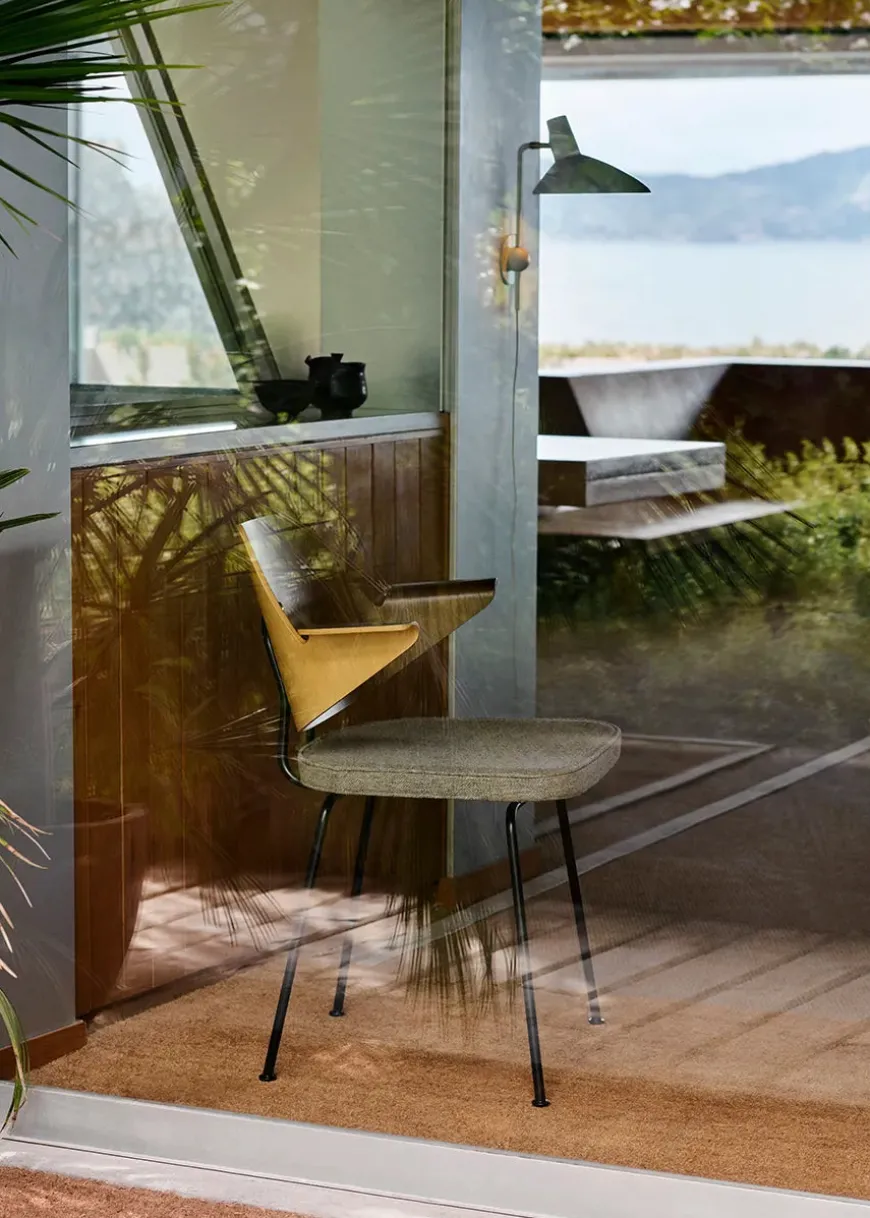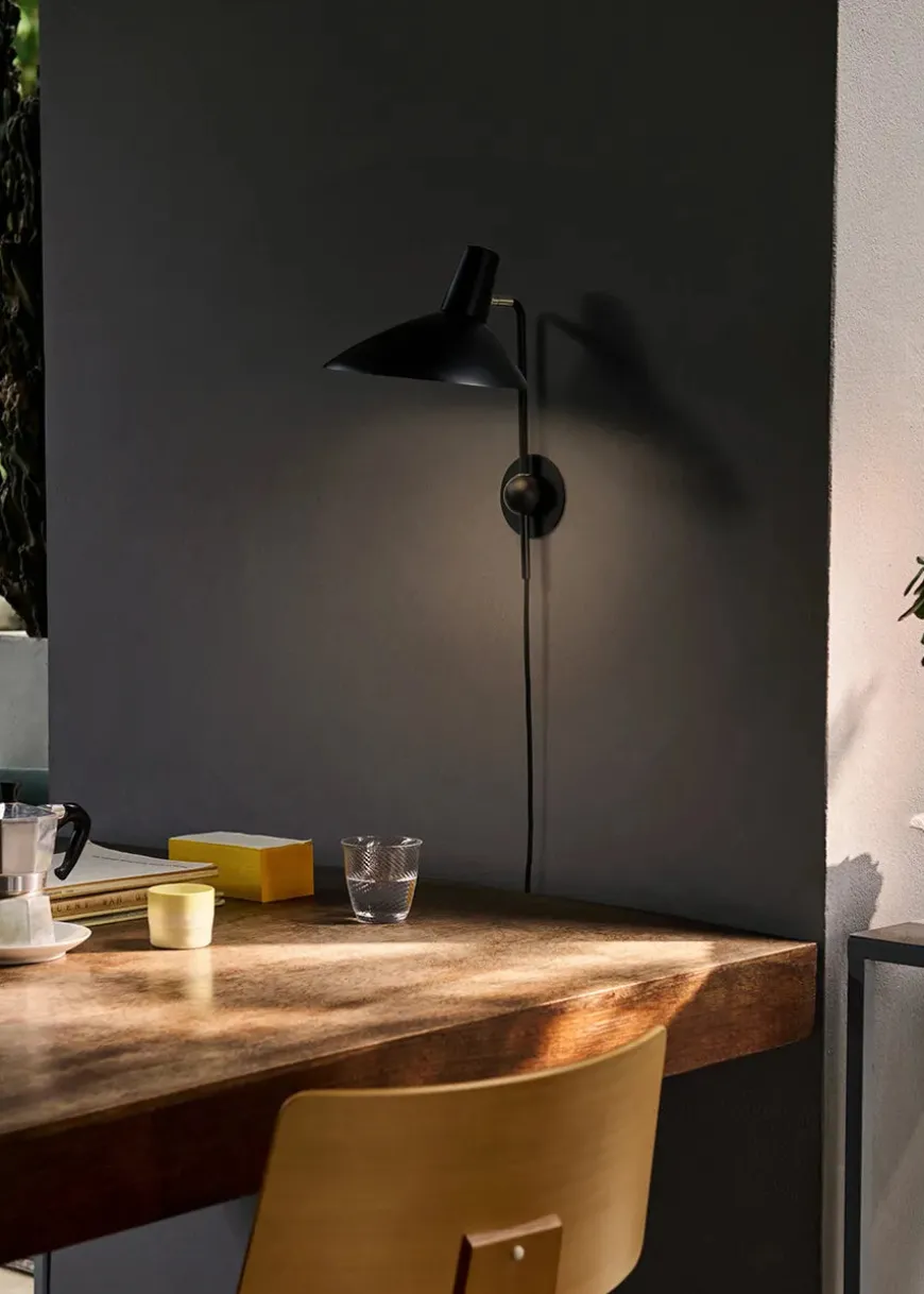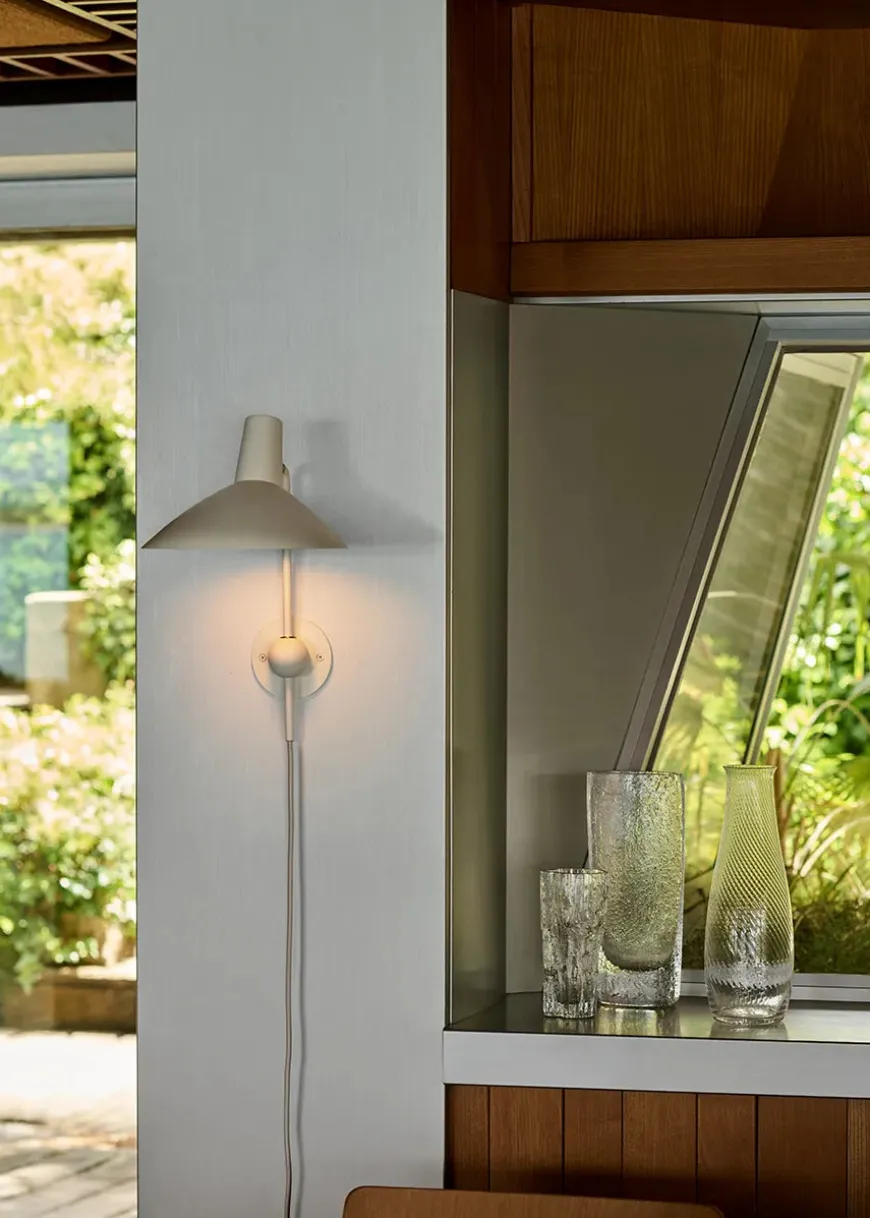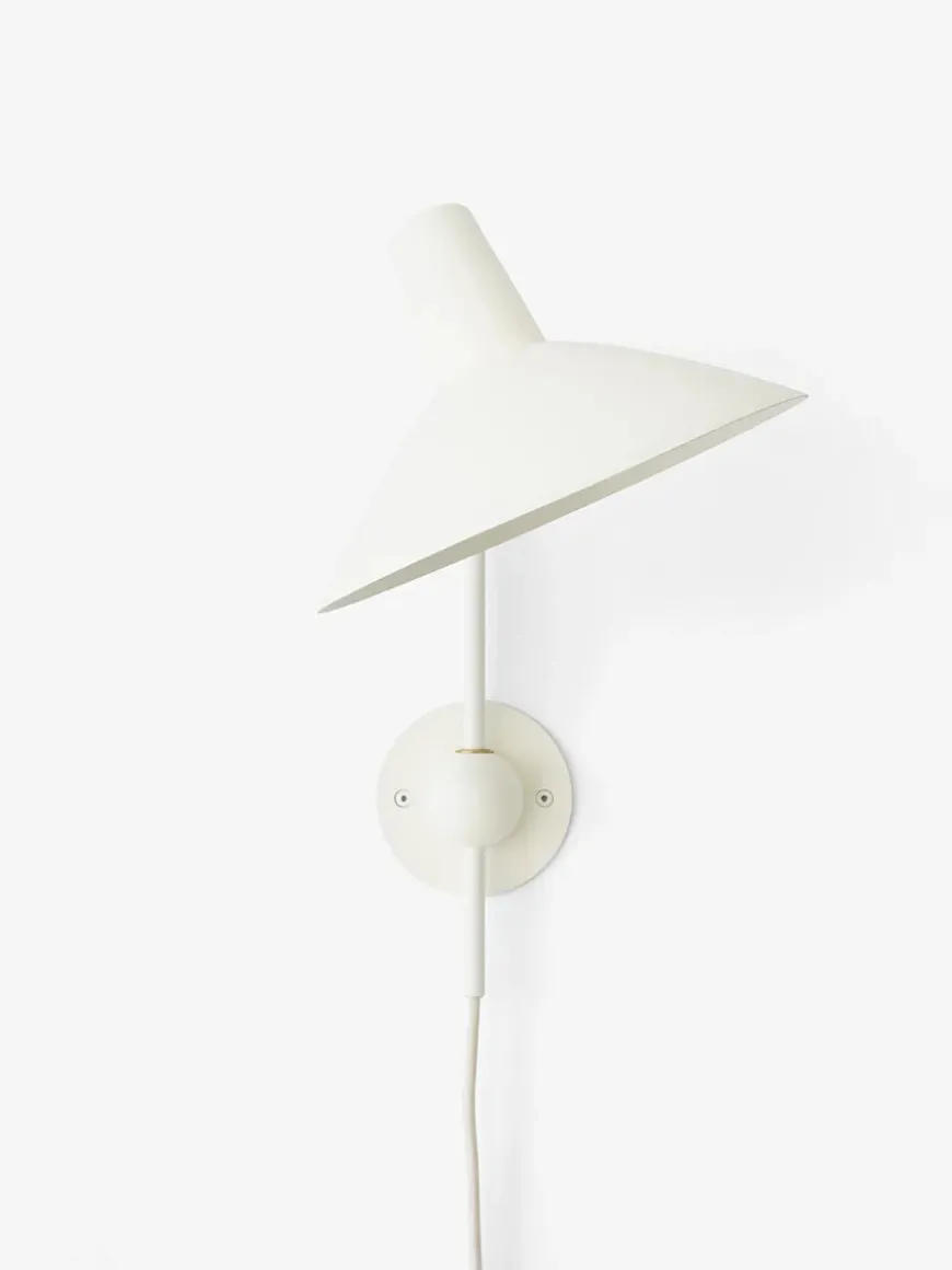 HM12 Væglampen er inspireret af skitser af den originale lampe af Hvidt & Mølgaard, hvor Tripod-væglampen forbliver tro mod det ikoniske Tripod design. Ligesom de andre lamper i Tripod kollektionen, så er væglampen fremstillet af lakeret aluminium med messing detaljer. Væglampen kan bruges flere steder i hjemmet, da skærmen har en drejefunktion.