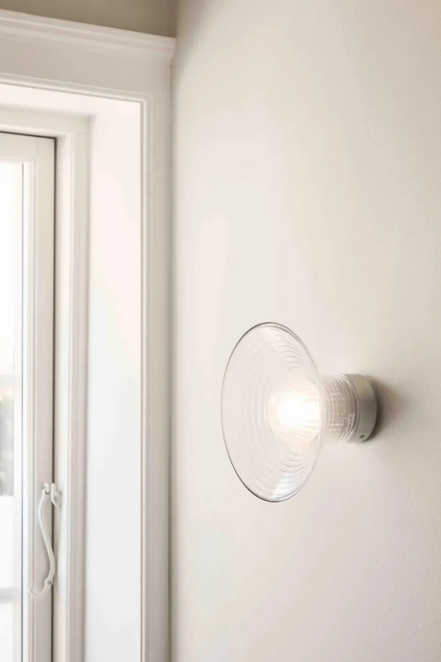 U12 væglampen Sletterhage er designet af Laura Bilde. Væglampen er lavet i aluminium og riflet glas, som giver et flot lys med masser spil.