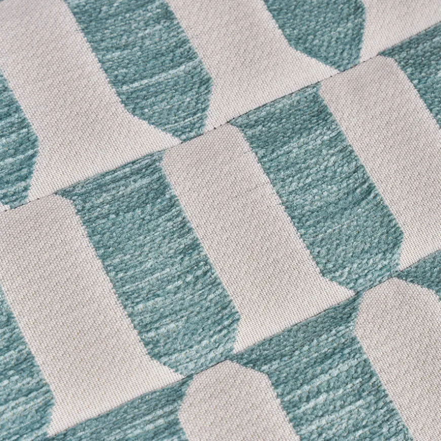 Denne særlige version er betrukket med et markant, tofarvet tekstil, inspireret af et middelalderligt våbenskjold. Det historiske motiv er oprindeligt skabt af det anerkendte franske tekstilhus Maison Le Manach og er siden blevet nyfortolket af Pierre Freys værksteder i det nordlige Frankrig. Stoffets karakterfulde udtryk står i kontrast til stolens industrielle base og tilfører designet en kunstnerisk dybde.