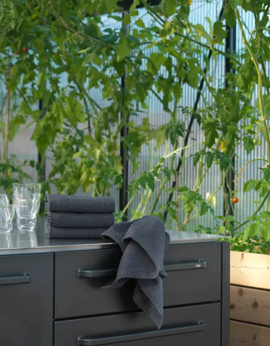 Vipp viskestykker til køkkenet er vævet i tofarvet økologisk bomuld for at opnå den bedste kvalitet og absorberingsevne.