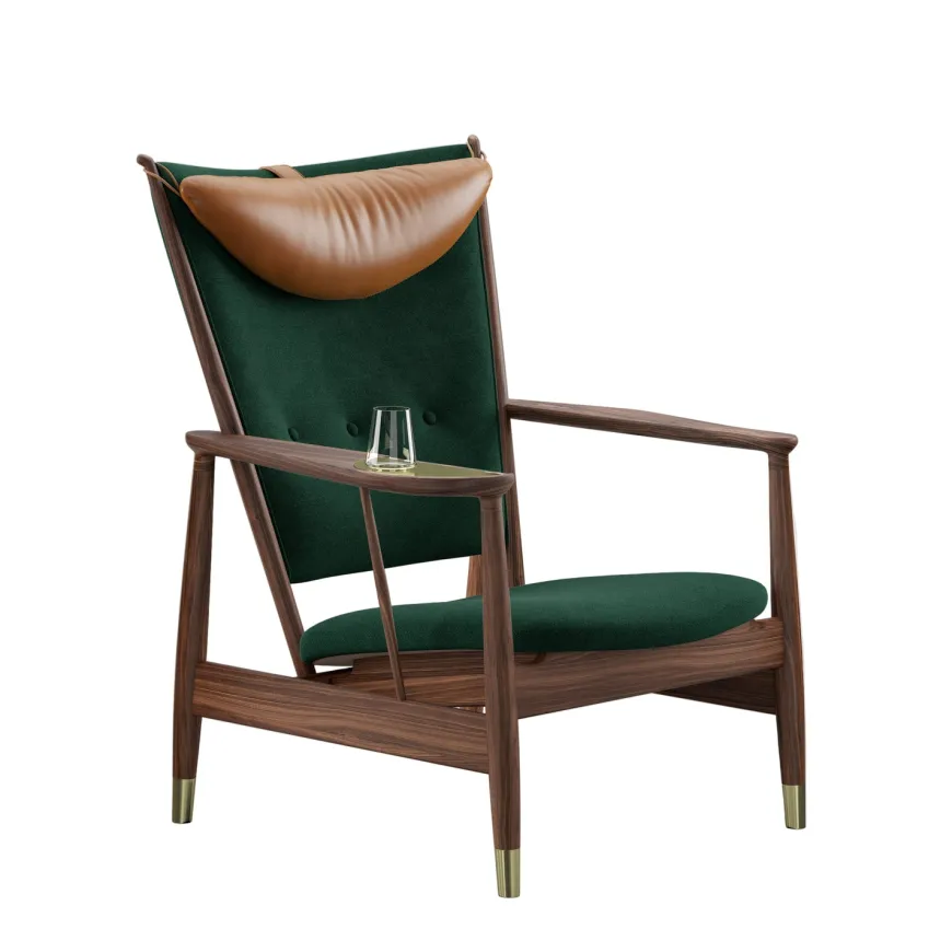 Whiskystolen er tegnet af Finn Juhl i 1948 og er kendetegnet ved hans kunstneriske sans for formgivning, funktioner og detaljer. Whiskystolen produceres i amerikansk valnød og polstres i læder og/eller tekstil. Stolen har desuden karakteristiske messingfødder og en håndlavet bakke i poleret messing. Ved køb af Whiskystolen medfølger et unikt mundblæst glas, specielt udviklet til stolen af glasmager Mikkel Yerst.