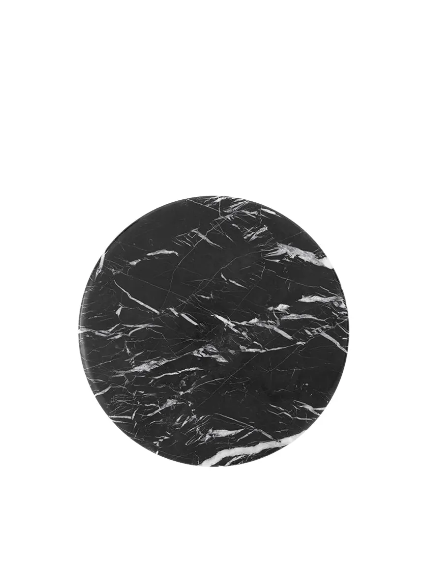 Marmorbordpladen er designet specifikt til Verner Pantons VP11 Wire Stool og forvandler skamlen til et stilfuldt og funktionelt sidebord. Pladen hviler let på stolens koncentriske ramme. Med sin glatte overflade i ægte marmor fungerer den som en praktisk overflade til bøger, drikkevarer eller dekorative genstande.