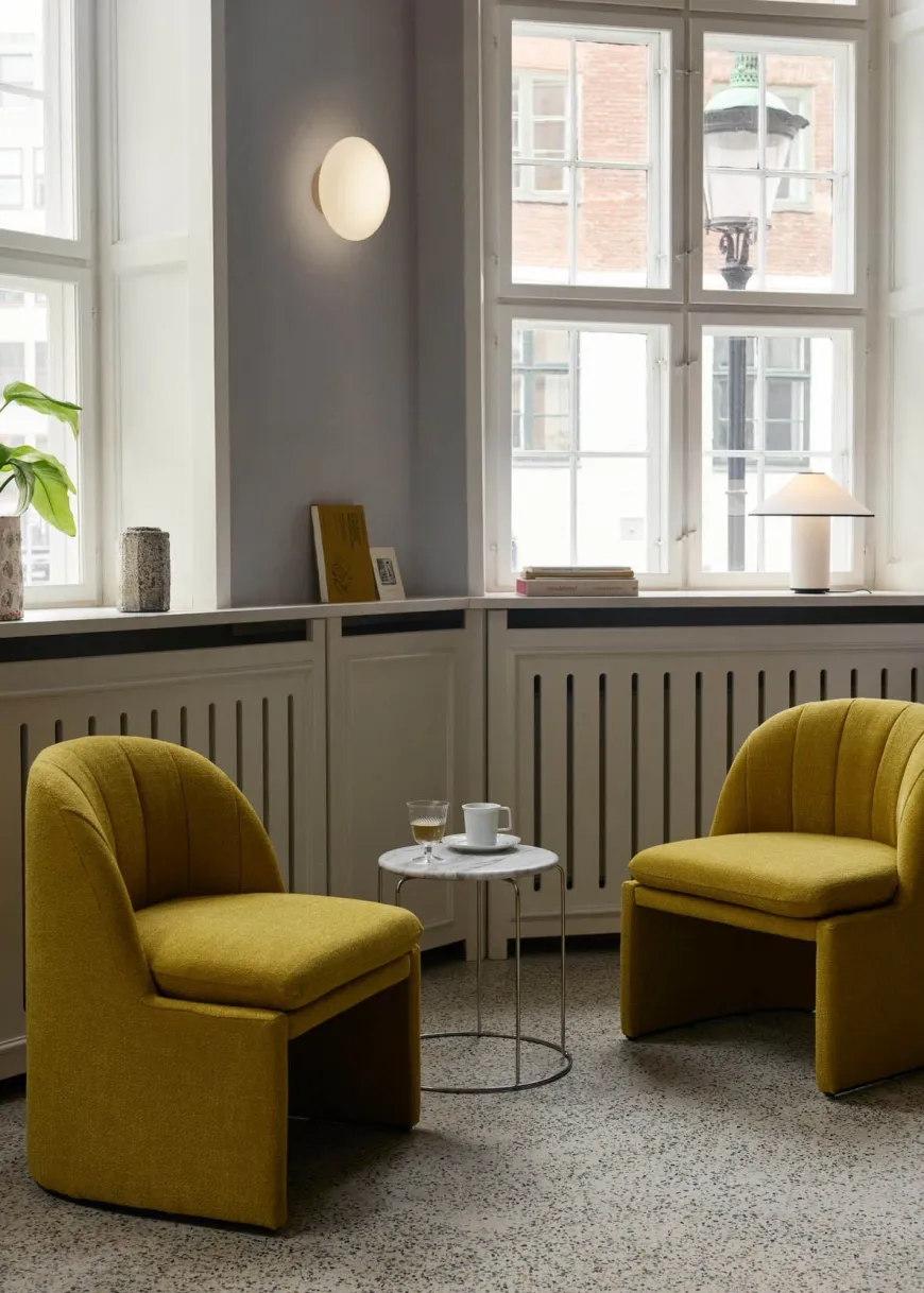 Et multifunktionelt designikon, der passer lige så godt ind i private hjem som i hoteller, restauranter eller offentlige rum. Takket være skjulte plastbeslag er toppen nem at montere og fjerne, hvilket understøtter fleksibilitet og cirkularitet i designet