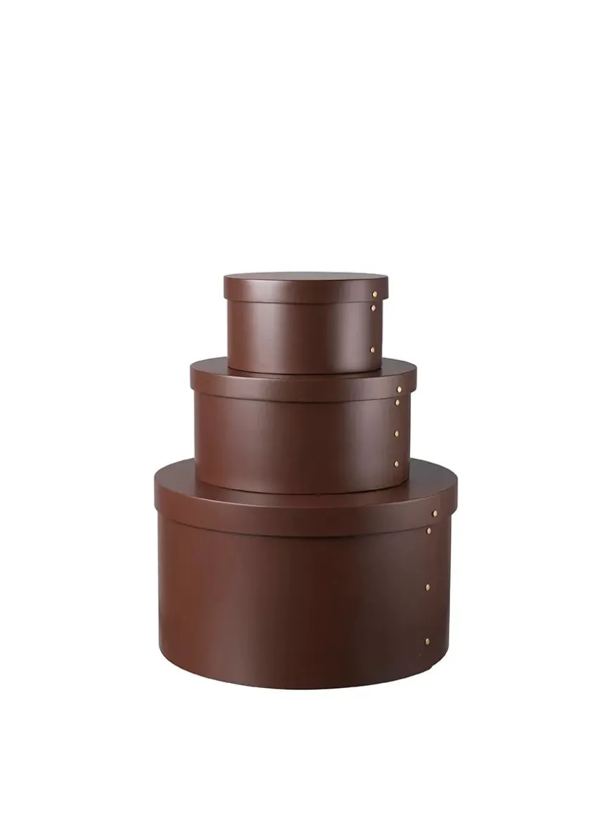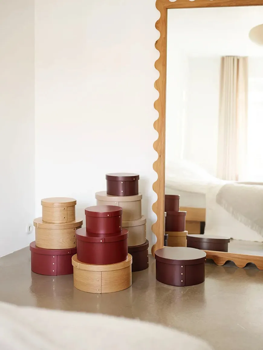 Drejø opbevaringsæskerne kommer i tre forskellige størrelser og i fire forskellige finishes.